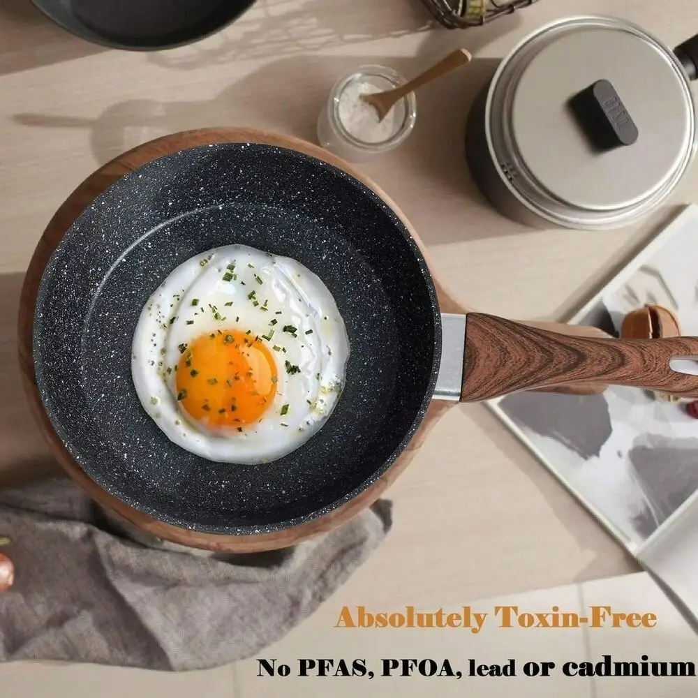 【Super Non-Stick Experience】Inside – High-grade natural marble coating, food just slides right out of the pan, making cooking a breeze.