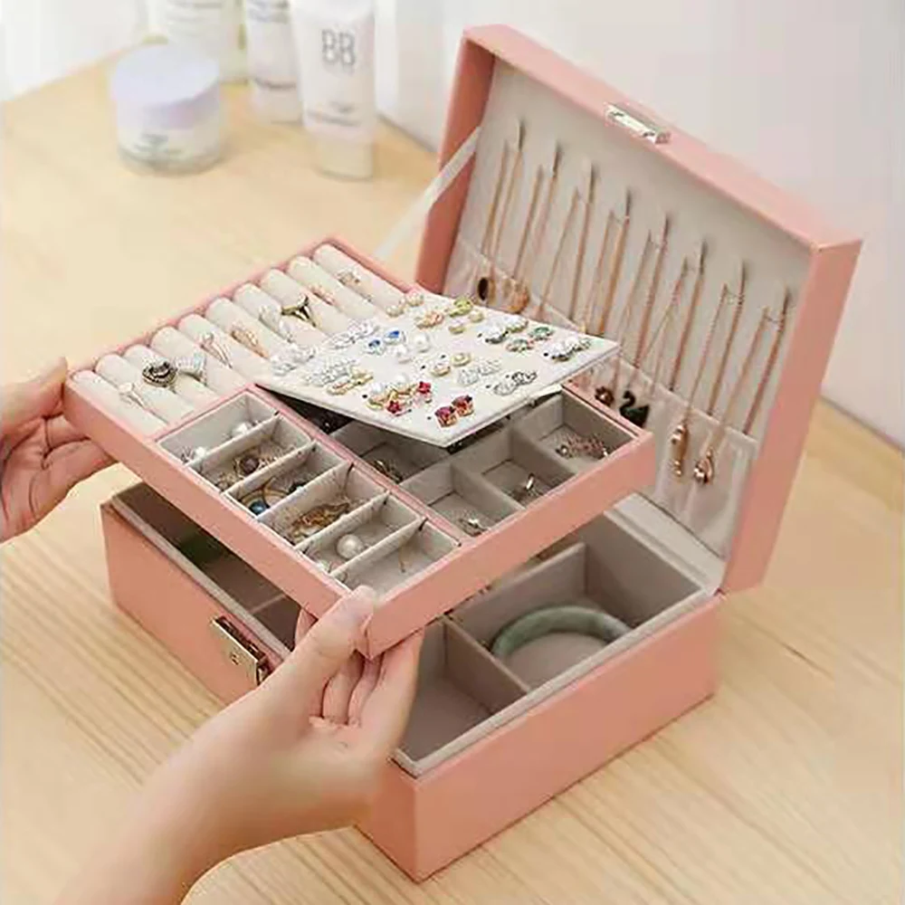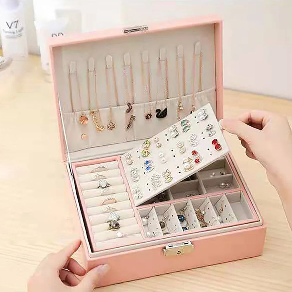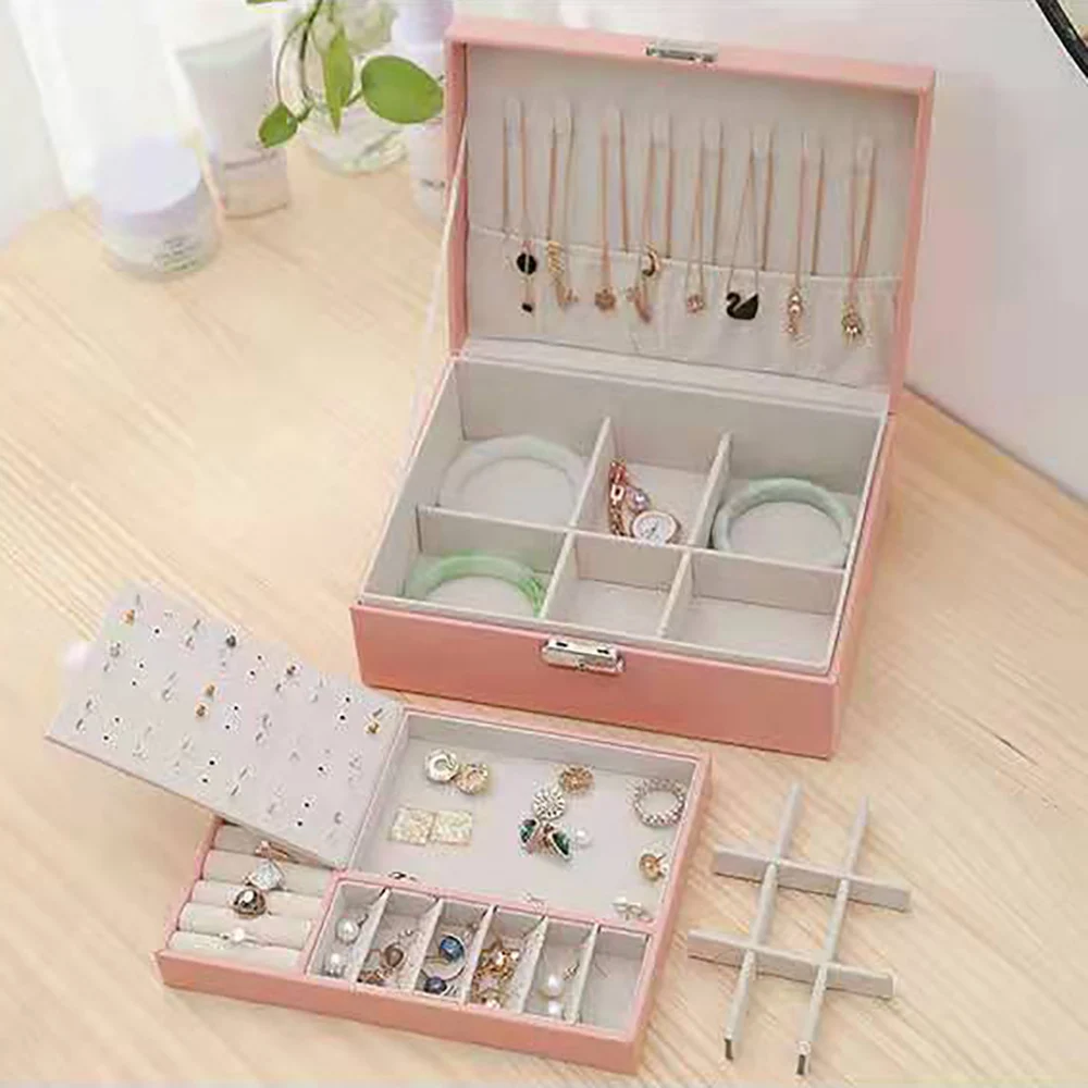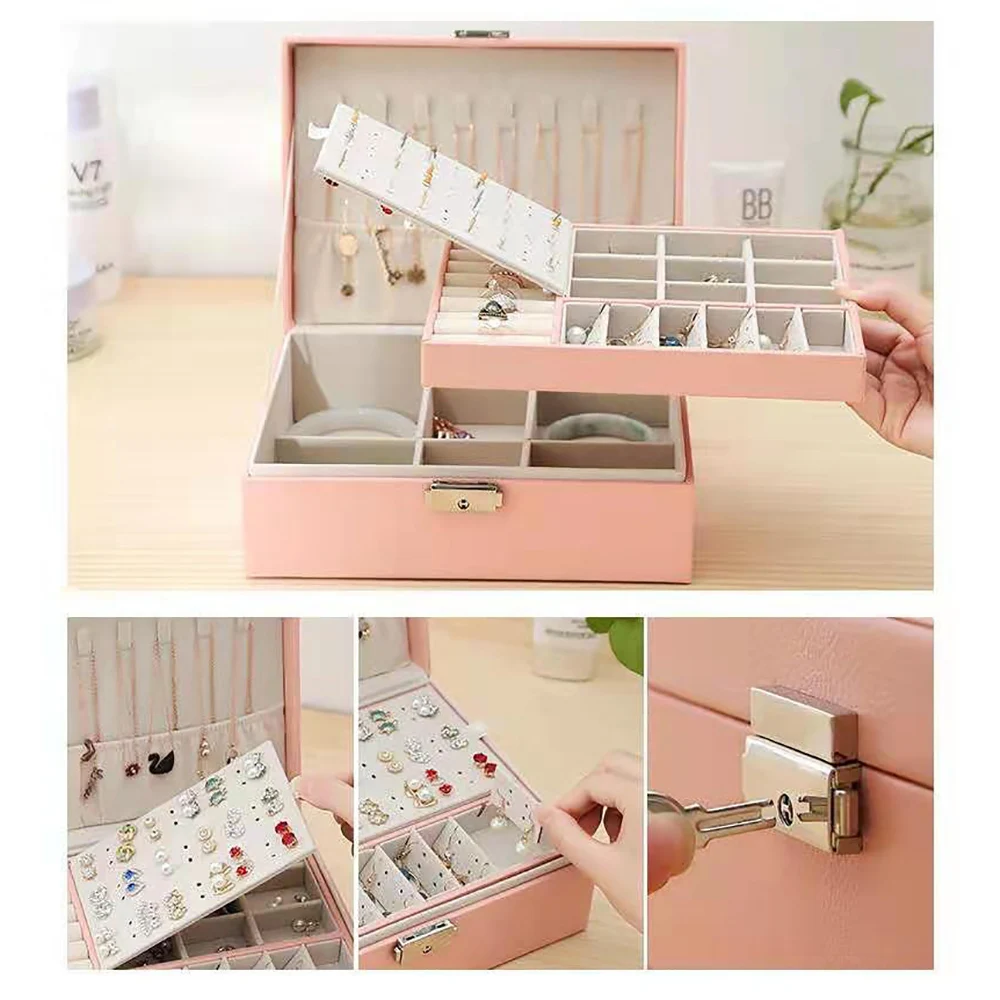 Function: Double-layer storage box, can store earrings, necklaces, bracelets, watches.