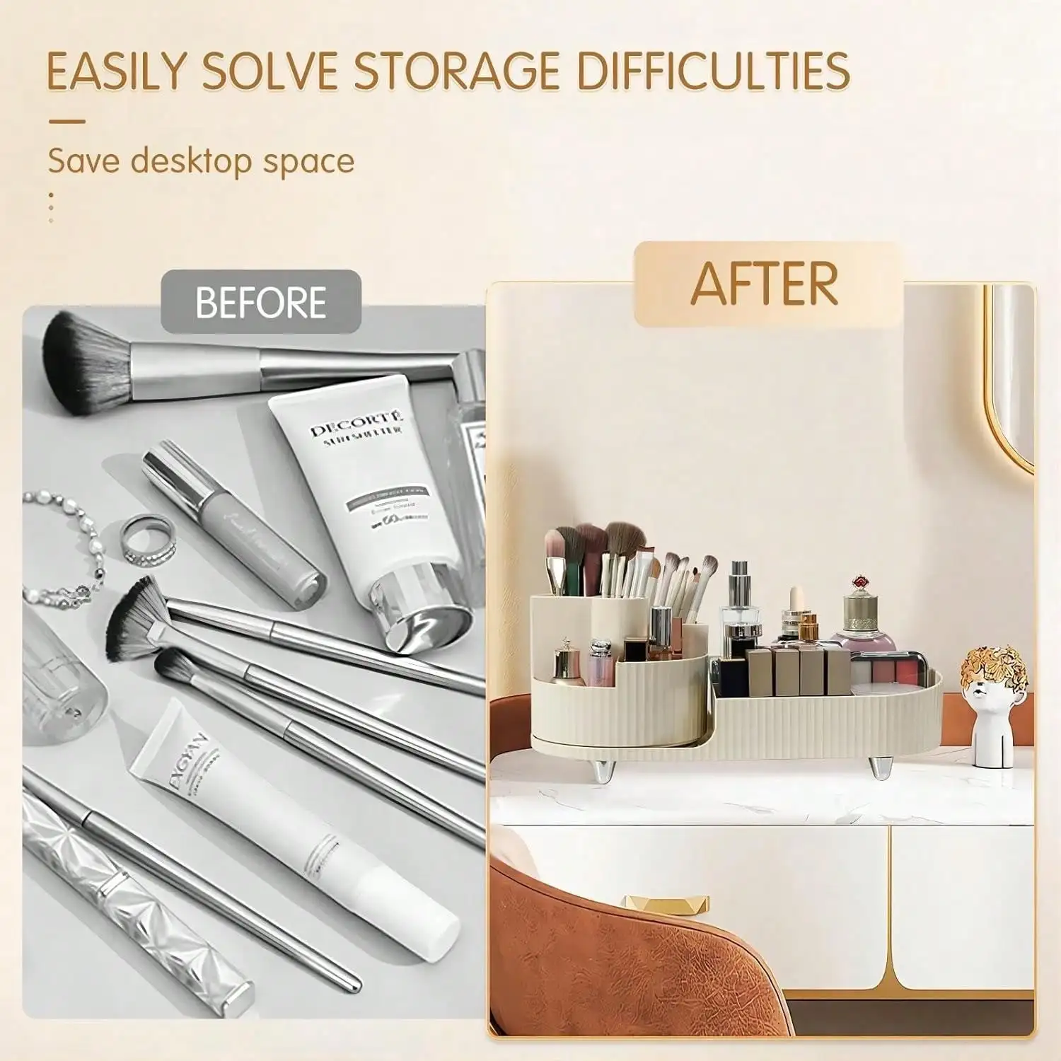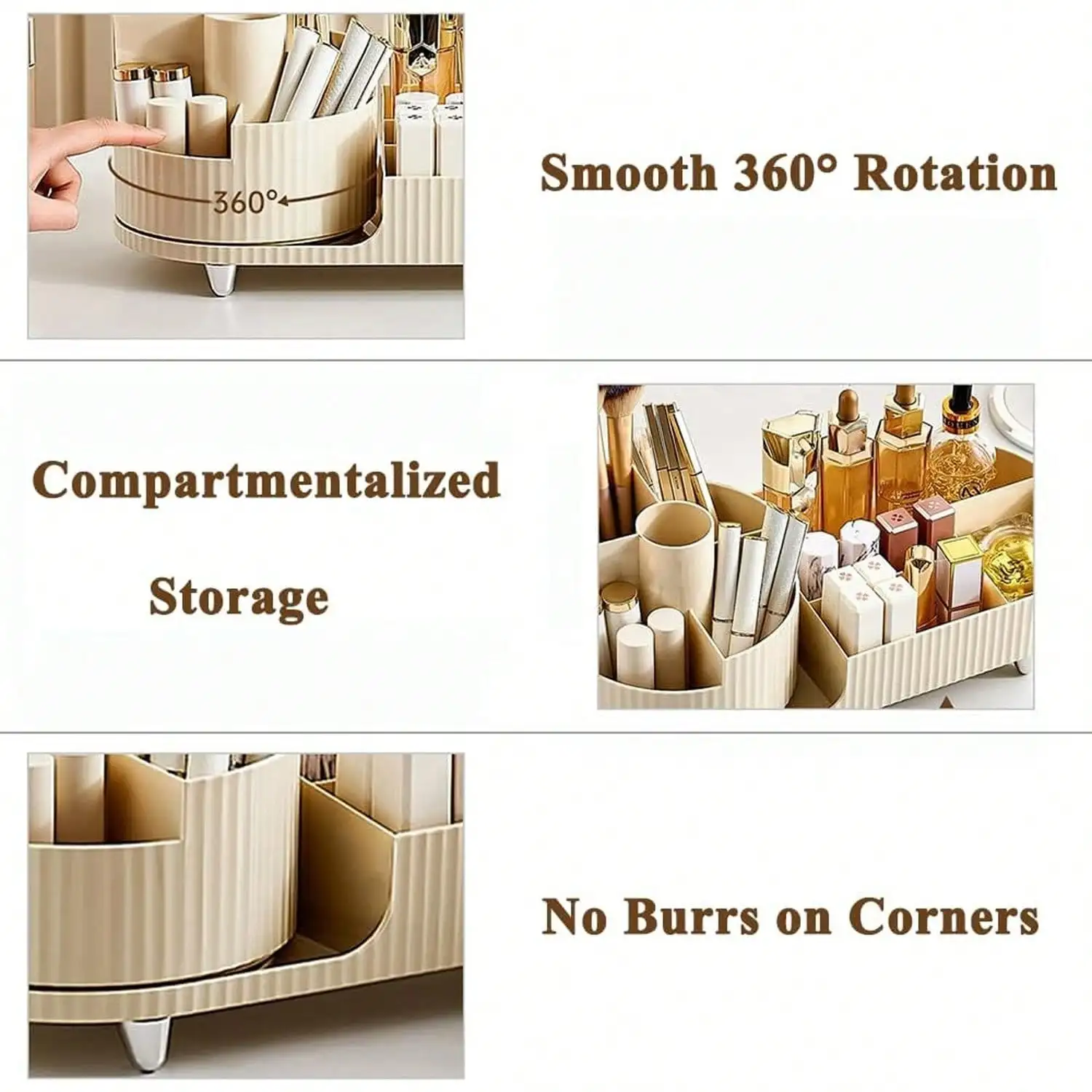 360°Rotation: 360° makeup brush organizer, using the latest technology, rotates smoothly and quietly, by rotating the base to quickly get the items you need,keep your makeup brushes within and don’t waste time looking for them.